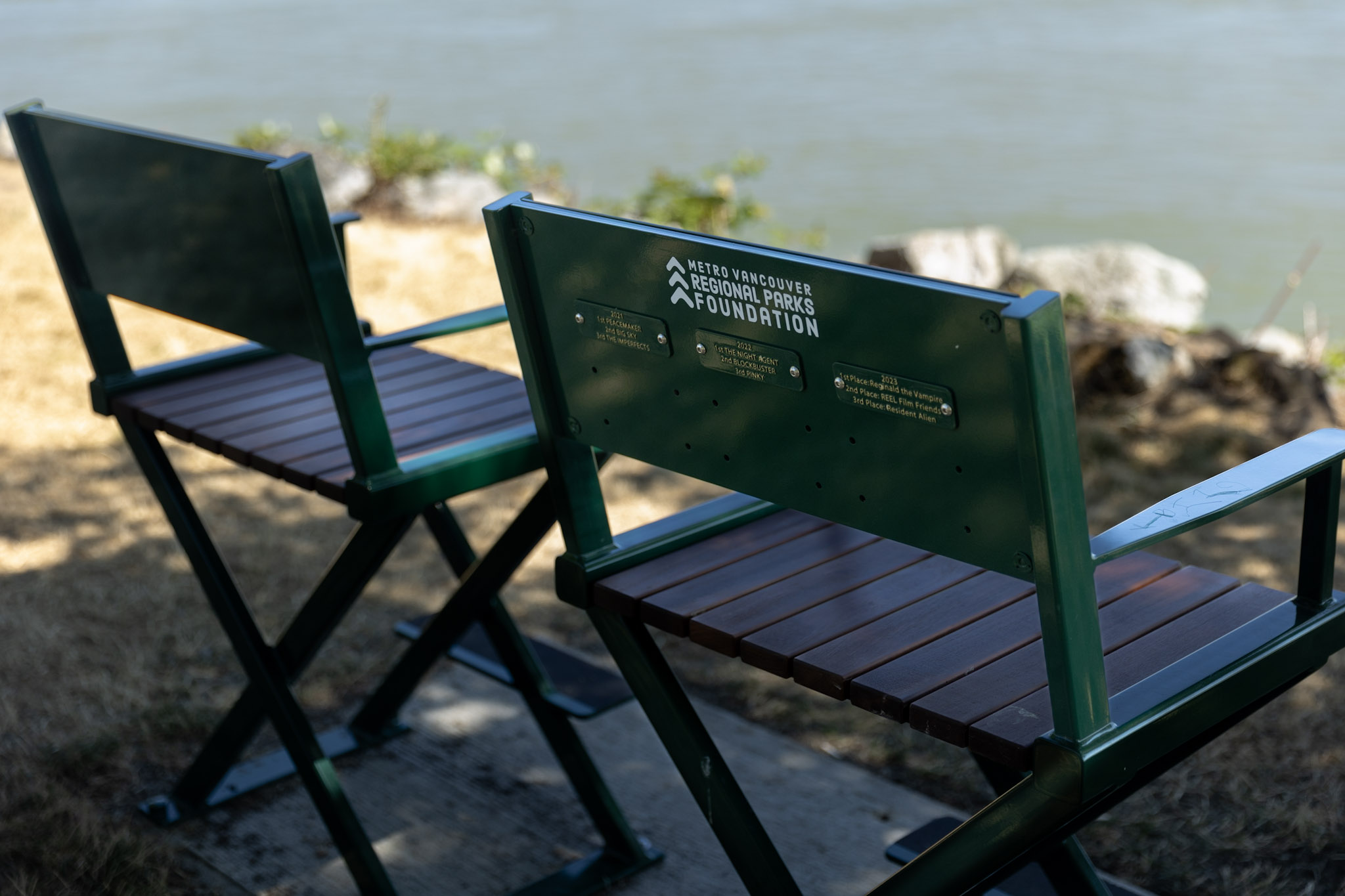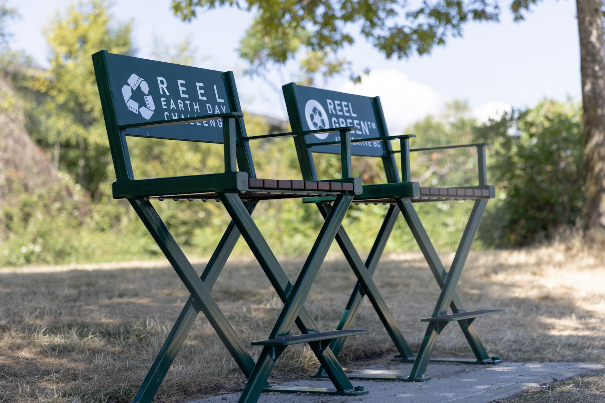 Designed and created in a unique way to show the relationship between the BC Film Industry and the Metro Vancouver Regional Parks, these chairs acknowledge the impact of Reel Green’s REEL Earth Day Challenge. The annual fundraiser works with Metro Vancouver Regional Parks Foundation (MVRPF) and industry to raise money for park projects and give back to the community.